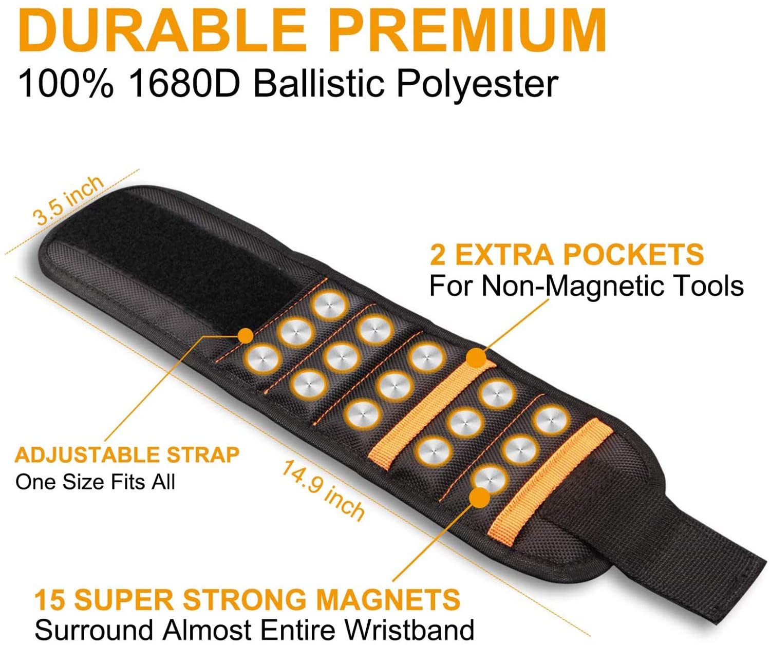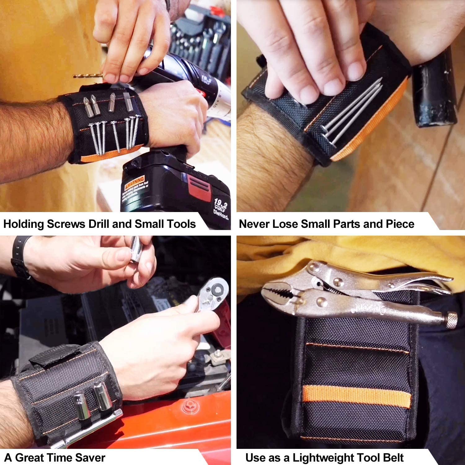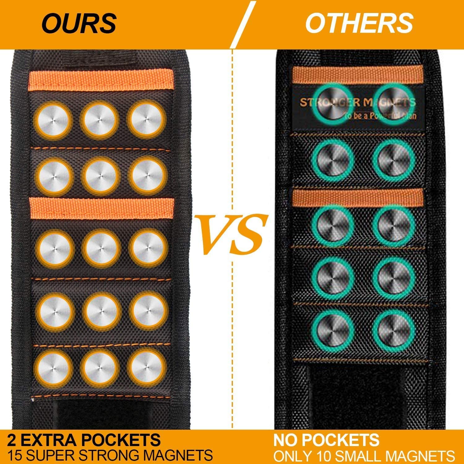 | Don’t be fooled, Studies have shown that the wrist band of 10 magnets has a magnetic missing area, and the wrist straps of 20 magnets are too crowded and not lightweight enough. Soft Digits magnetic wristband embedded with 15 strong magnets, which make the wristband much powerful magnetic, Tired of everything rolling around, falling on the ground, searching for missing screws, nails drill bits? It saves you time and headaches! |