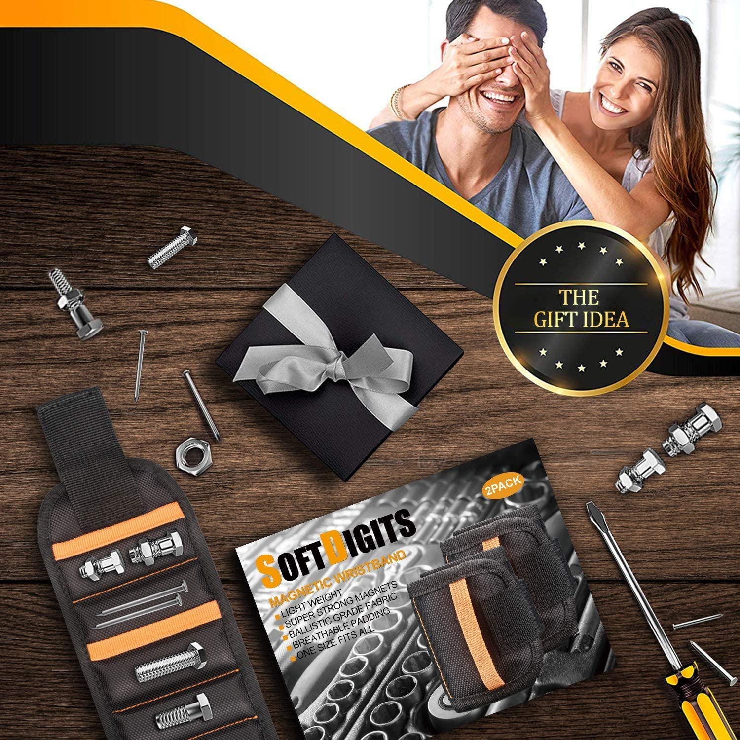 This will make a great gift for any handyman in your life. The wristbands are very sturdy and can hold a lot. Doesn’t come with any tools, you add your own. It does come in a nice gift box. I’m going to be ordering another set for my dad!