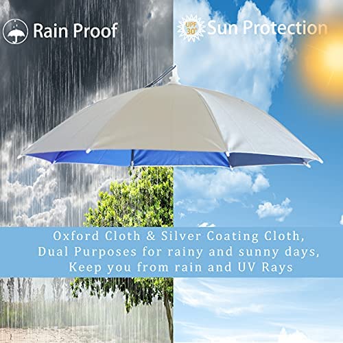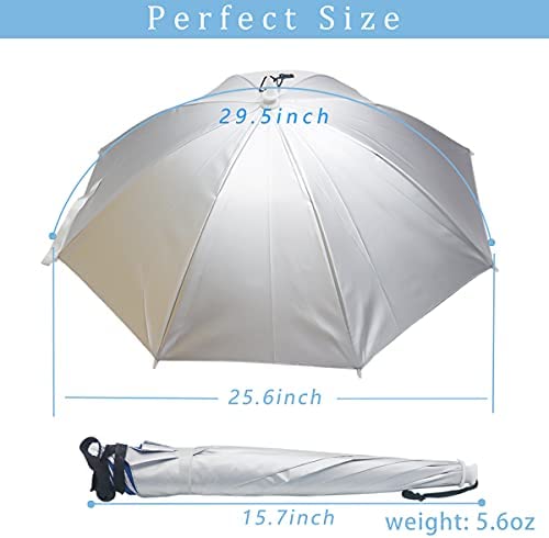 Qukipet Umbrella Hat, 25 inch Fishing Umbrella Cap for Adults and Kids, Hands Free Umbrella Elastic Folding Compact UV&Rain Protection Headwear for Fishing Golf Gardening Outdoor-Silver Sports & Outdoors