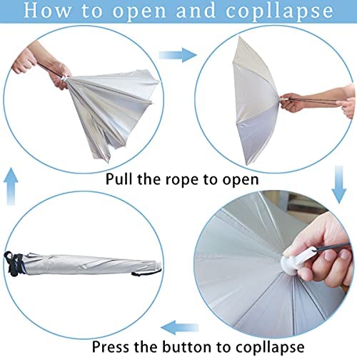 How to Open: Pull the rope on the top till the plug lines up and through the hole , When the button is pulled out of the hole, umbrella is open and can be locked automatically.